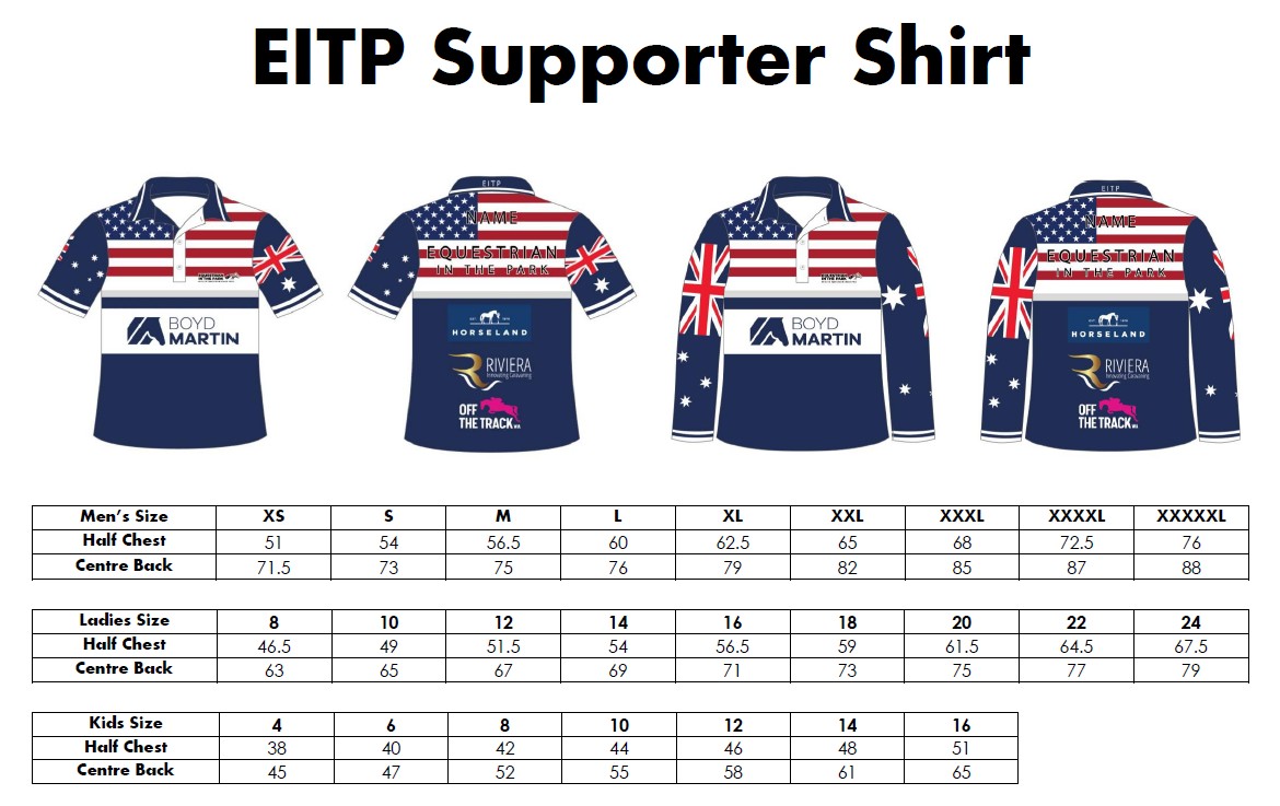 Sizing and photos of the shirts can be found here https://equestrianinthepark.com.au/boydmartin/